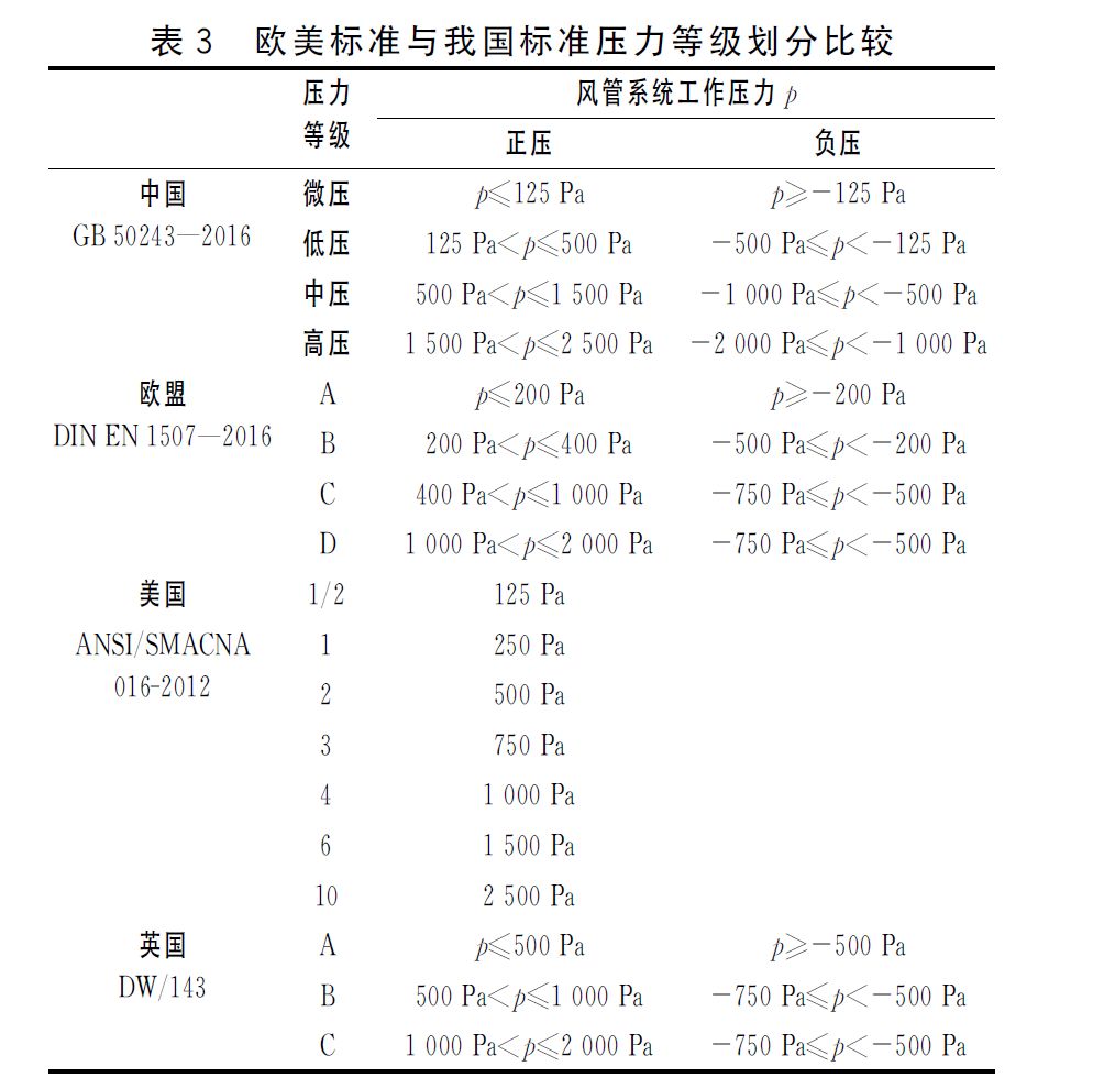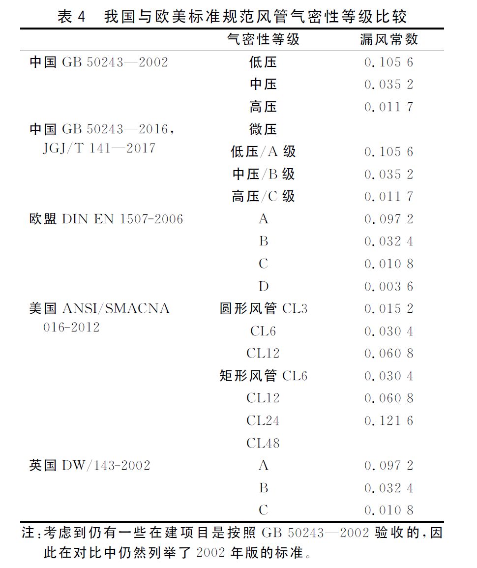 我国风管允许漏风量标准规范的发展及与国外典型标准规范的比较