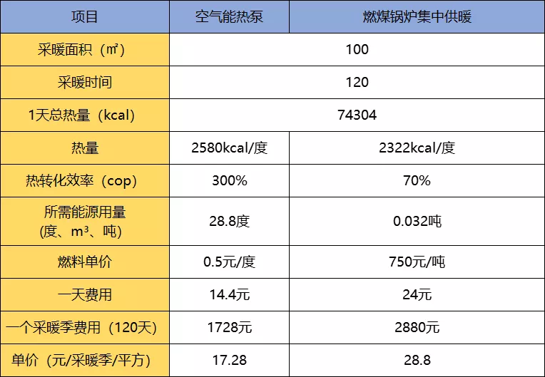 由上表可知,在煤价还没疯涨之前,一个季度的燃煤锅炉集中供暖大概花费在2800元左右,而现在煤价格的疯涨,没有集中供暖地区的普通家庭每家每户就算烧3吨煤,整个采暖季的取暖费用也要4200~6600元,而采用空气能取暖,100平米的节能建筑一个采暖季4个月费用1500元不到,则可节省约3倍的费用。