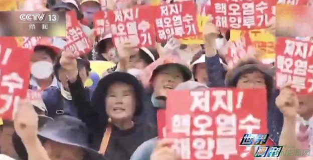 同一天,在日本驻济州总领事馆前,来自济州自治道渔业和农业团体约2000多人集会抗议,谴责日本将福岛核电站核污染水排放入海。