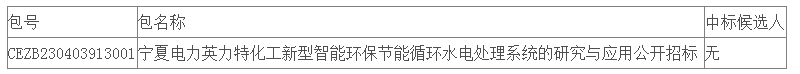 招标 | 宁夏电力英力特化工新型智能环保节能循环水电处理系统的研究与应用公开招标中标候选人公示