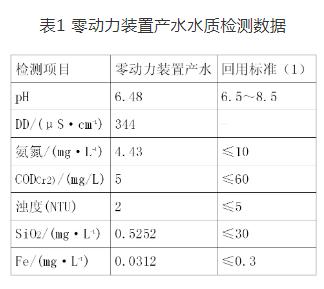 将零动力膜系统安装在电厂补给水系统一级反渗透浓水出口,反渗透浓水直接接入零动力膜系统,试验过程中零动力装置与反渗透装置同步运行。持续跟踪零动力装置产水的主要指标,检测结果见表1。