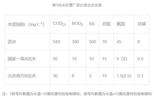 (1)本污水处理厂设计规模为12×104m3/ d,在不新增用地的情况下,出水标准由原国标一级 A 标准提升到北京市地标《城镇污水处理厂水污染物排放标准》(DB 11/890—2012) 的 B 标准。