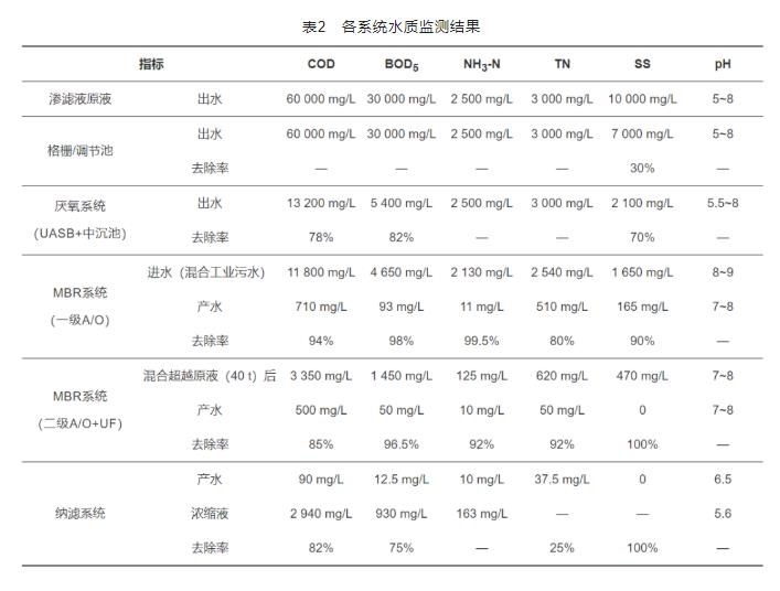 本工程于2018年10月调试完毕至正式运行以来,混合污水处理站处理效果稳定,处理后的出水达到《生活垃圾填埋场污染控制标准》(GB 16889—2008)表2要求后排入市政污水管网或回用。