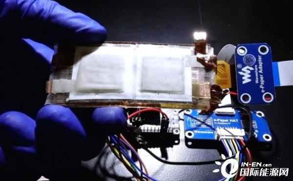 这块新型电池成功地为一个配备微型控制器和蓝牙模块的柔性显示系统供电,其表现出来的电池性能也比市售的锂离子纽扣电池好。