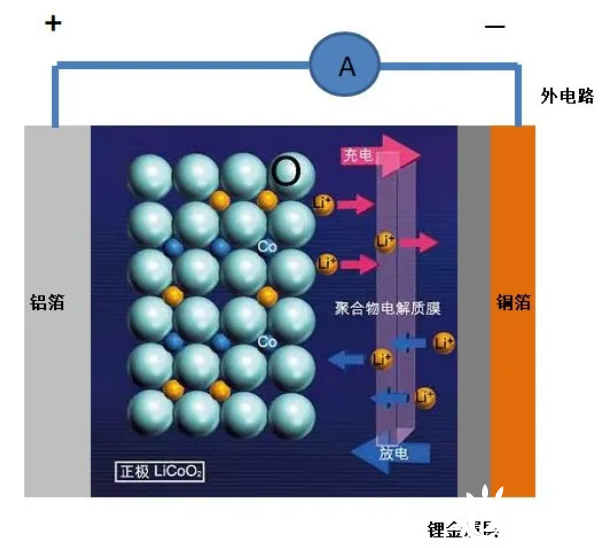 再讲到电池的工作原理,充电过程是正极材料中的离子(如锂离子、钠离子)穿过隔膜到达负极的石墨,电子则从正极集流体出发沿着外电路一路快跑到负极集流体,放电过程是反向的,离子和电子如此来回循环,就完成了电池一次次的充放电。
